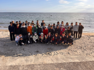 2025年の夏には、高校近くの羽根海岸で初めてのゴミ拾い活動を実施しました。